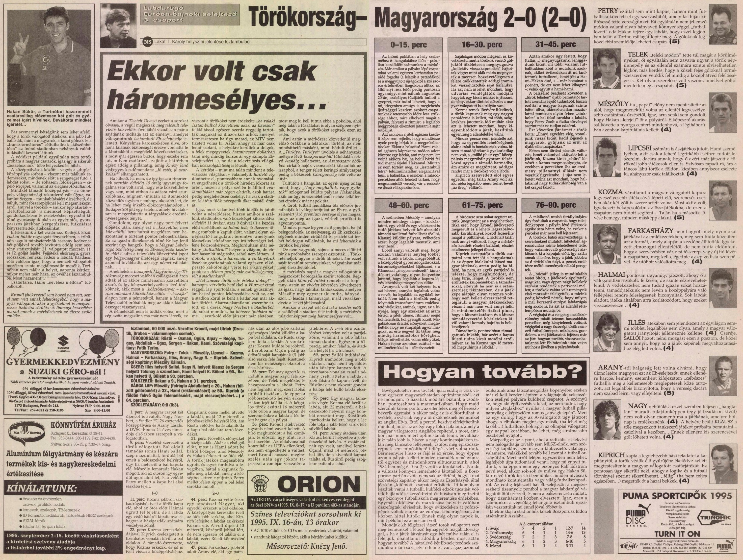 1995.IX.6. EB selejtező, Törökország – Magyarország 2-0