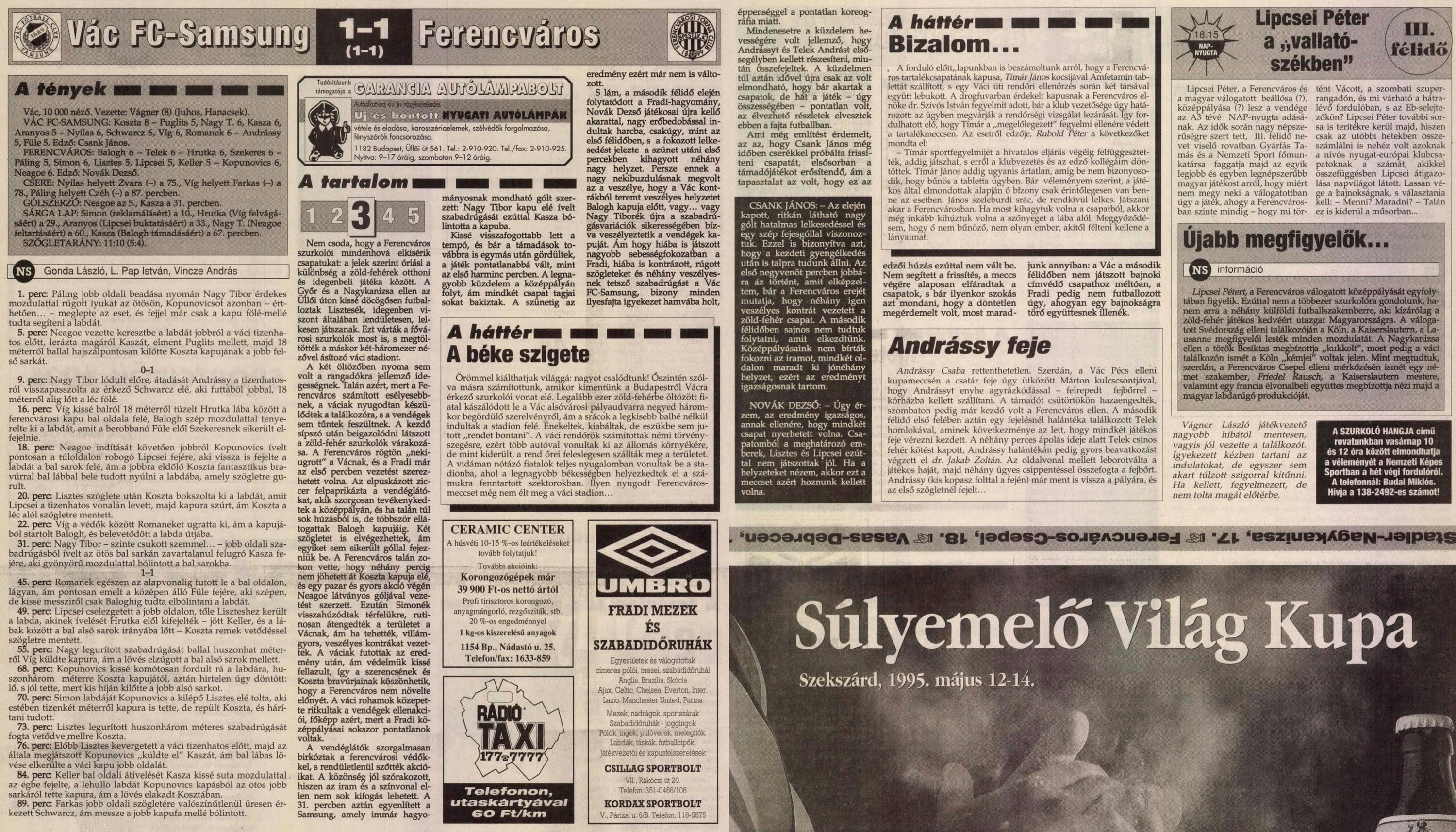 1995.V.6. Vác FC-Samsung – Ferencváros 1-1
