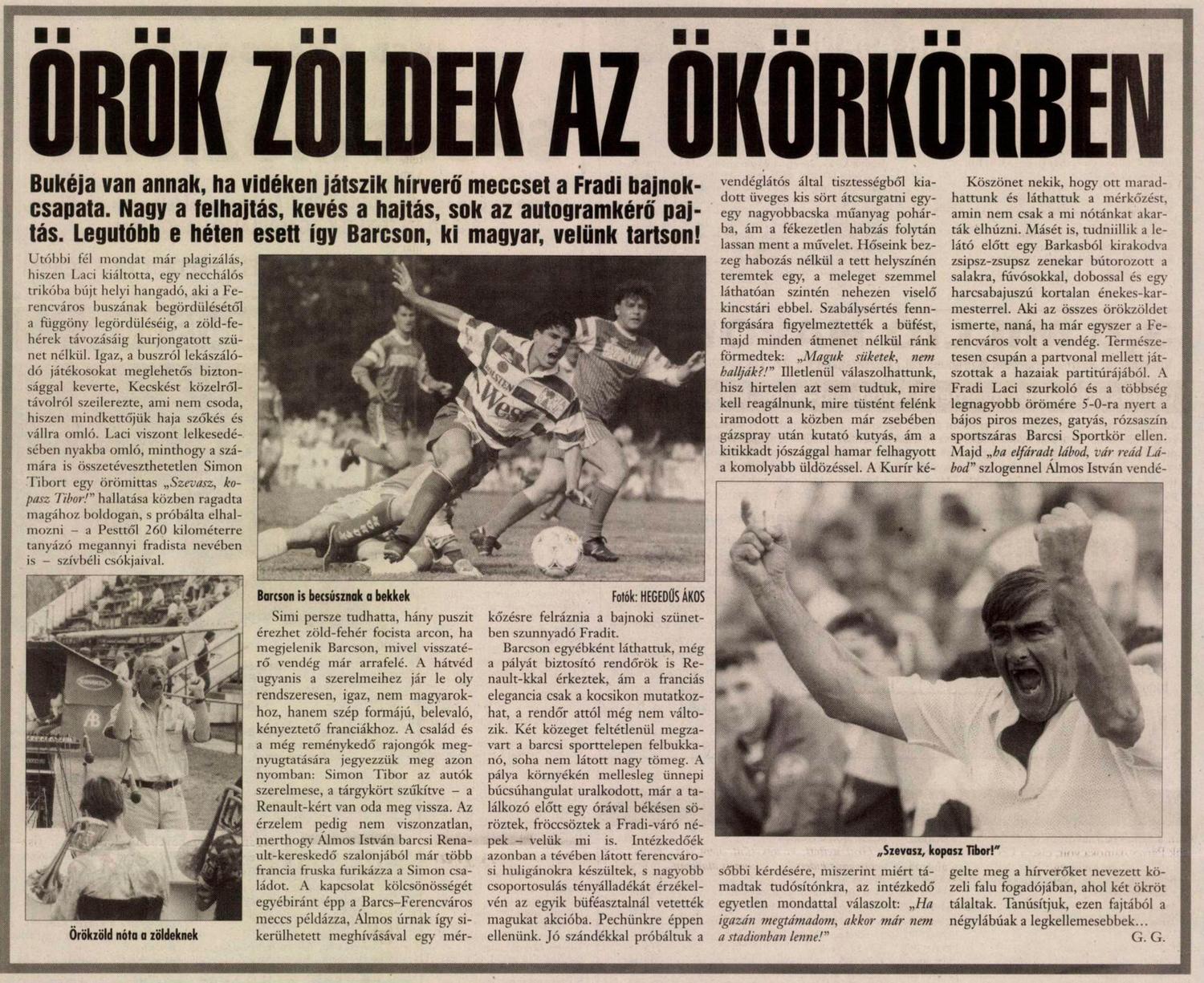 « 1995.VI.7. Sukoró FC/Tóparti-válogatott – Ferencváros 3-3 (edzőmérkőzés) 1995.VI.10. Pályaavató mérkőzés, Tápszentmiklós – Ferencváros ?-? »