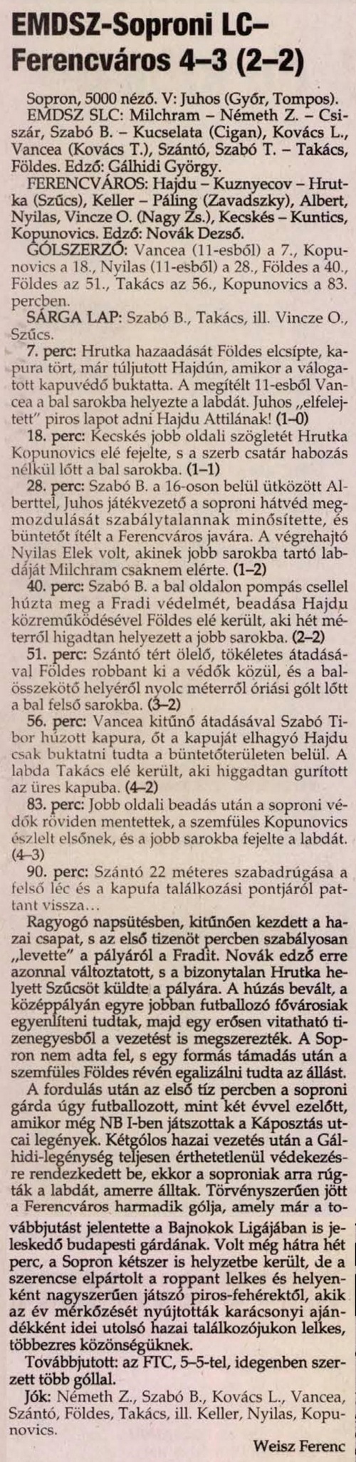1995.XI.15. MK, EMDSZ-Sopron – Ferencváros 4-3