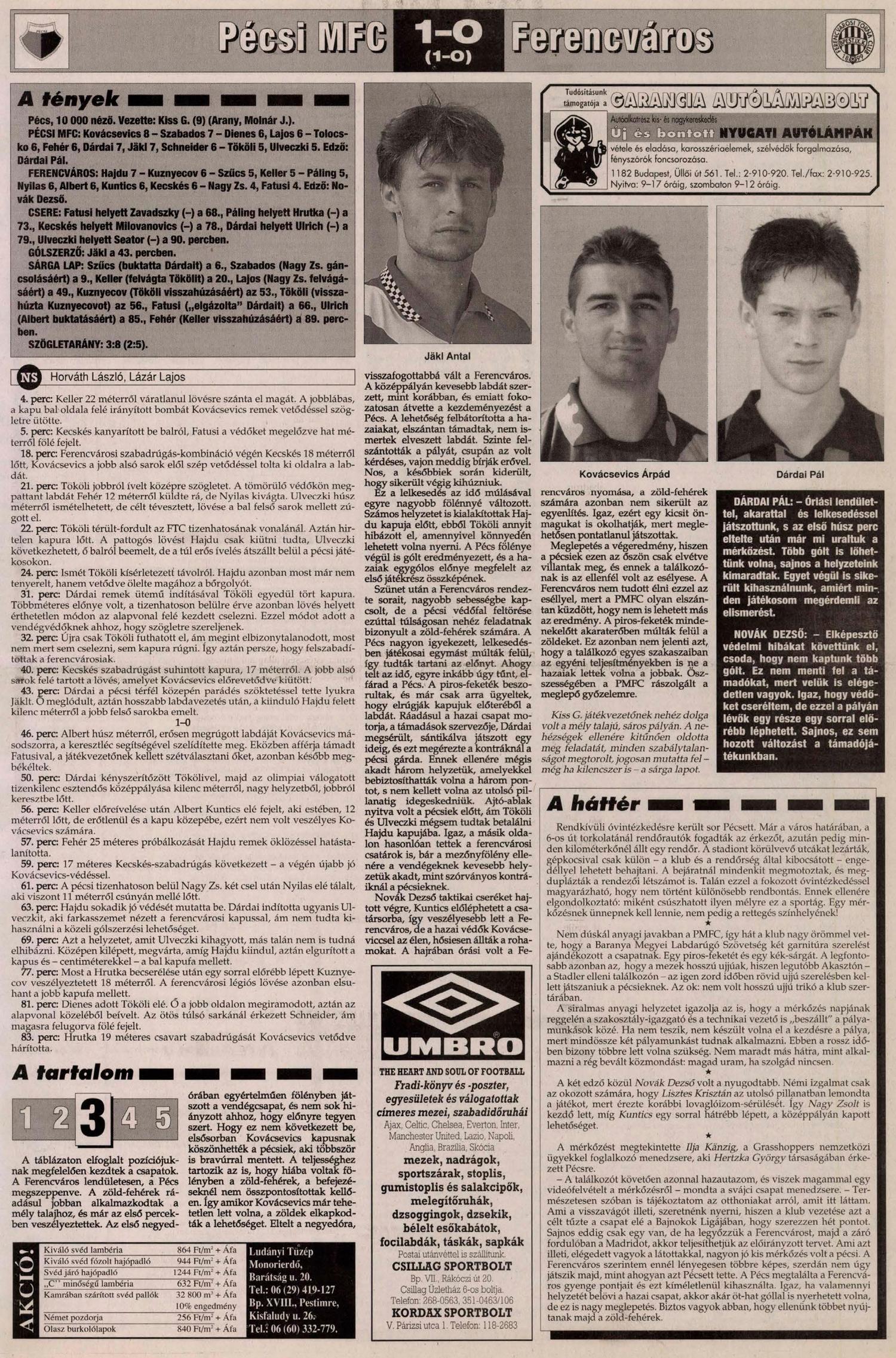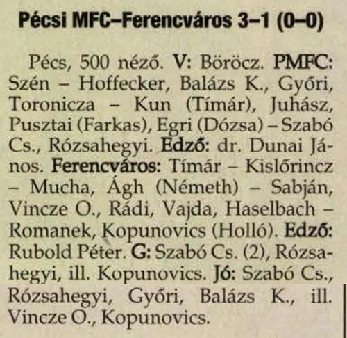 Pécsi MFC – Ferencváros 1-0 (1-0)