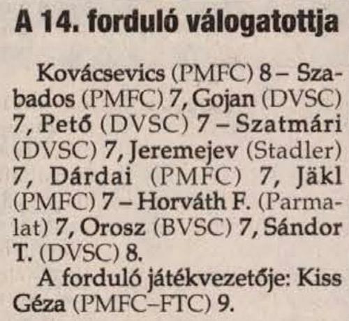 Jók: Kovácsevics, Szabados, Dárdai, Jakl illetve Hajdu, Kuznyecov, Nyilas