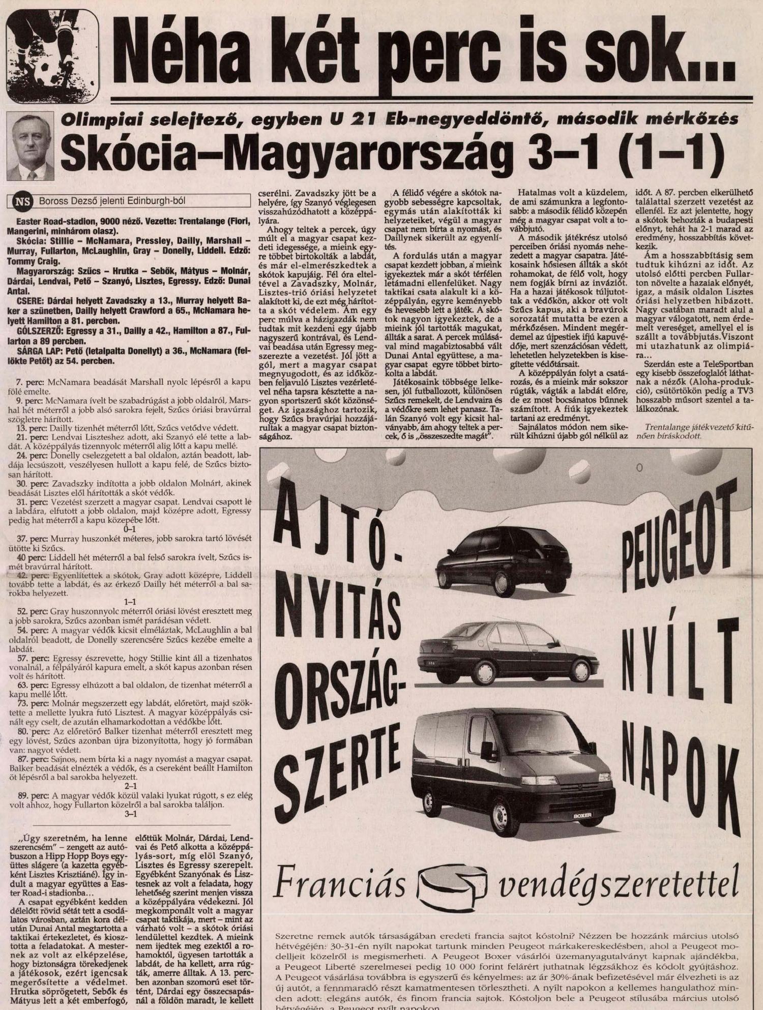 1996.III.26. Olimpiai selejtező, Skócia – Magyarország 3-1