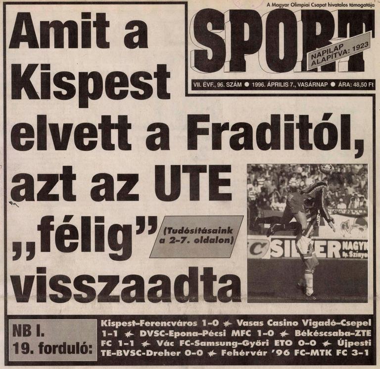 1996.IV.6. Kispest-Honvéd – Ferencváros 1-0