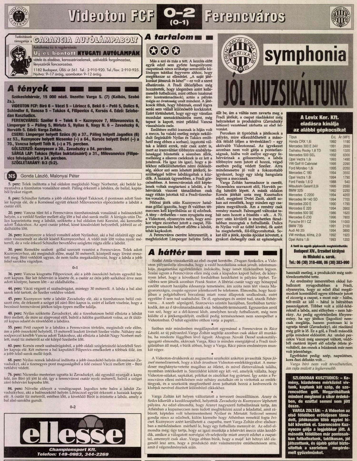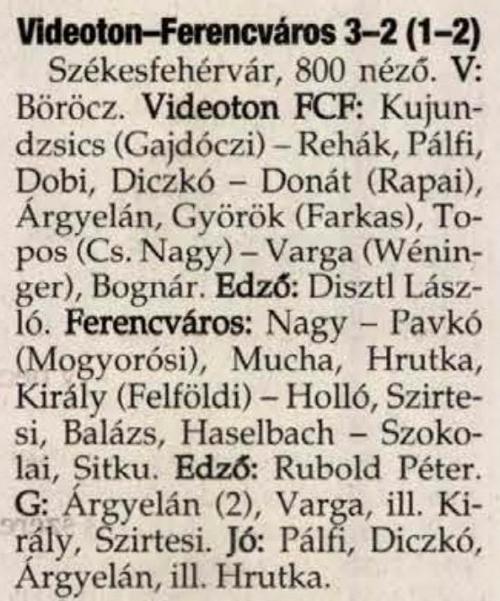 1996.IX.29. Videoton FC Fehérvár – Ferencváros 0-2
