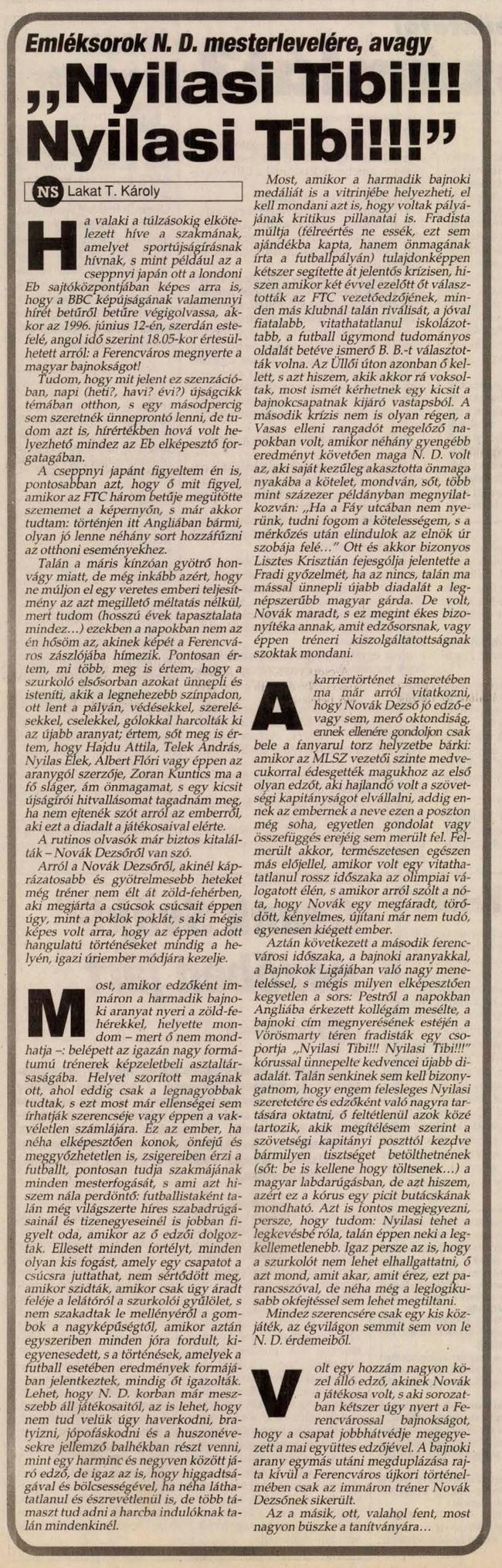 Novák Dezső: – Egyáltalán nem játszott jól a csapat, igaz, nagy volt a tét, és óriási volt a hőség. Ezek ugyan lehetnek mentségek, de semmi esetre sem elfogadható magyarázatok. Egyébként már a szünetben mondtam a fiúknak: nem lesz jó, ha csak Telek, Nyilas és Keller hajt, a többiek pedig lazsálnak.