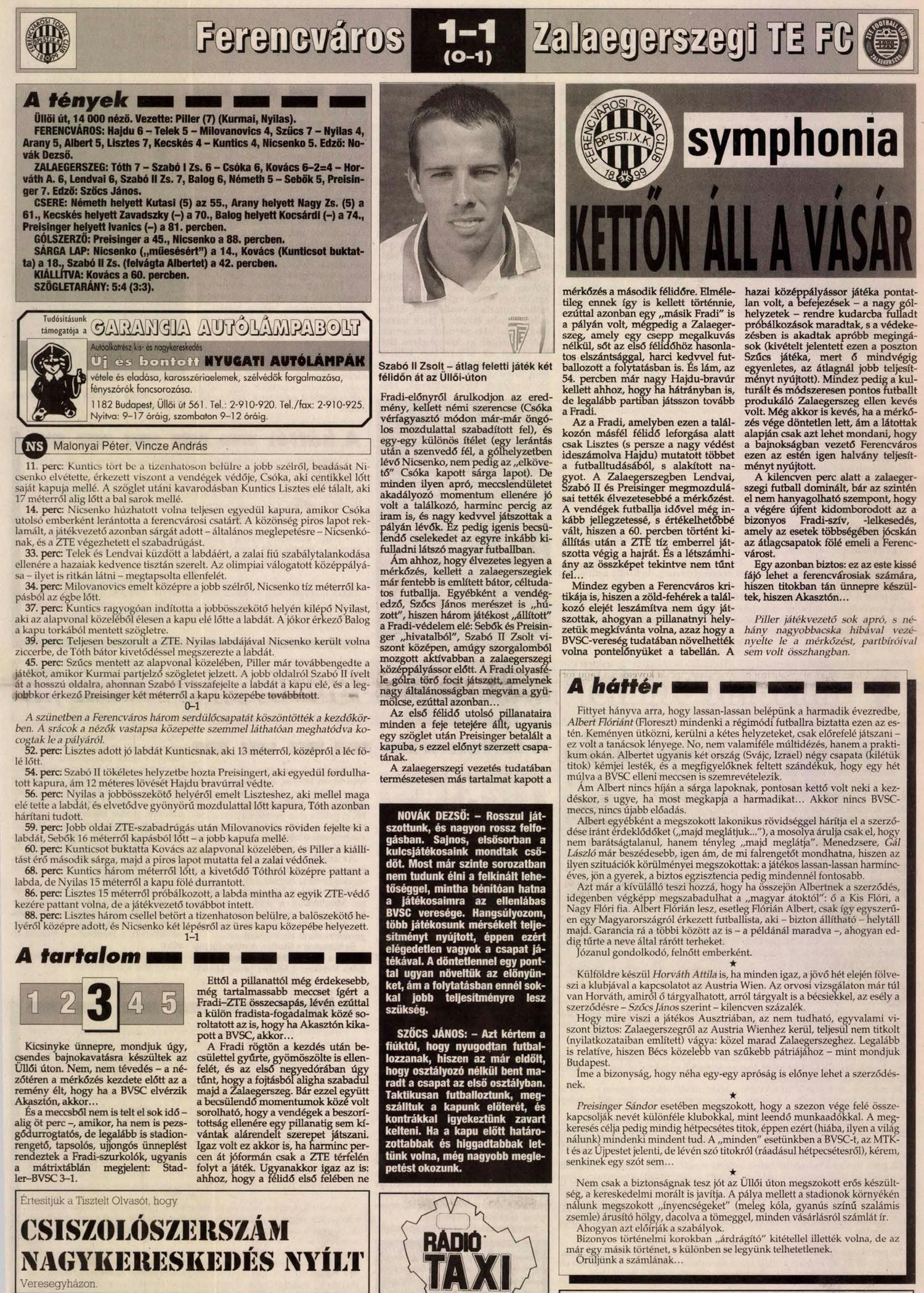 1996.VI.5. Ferencváros – ZTE 1-1