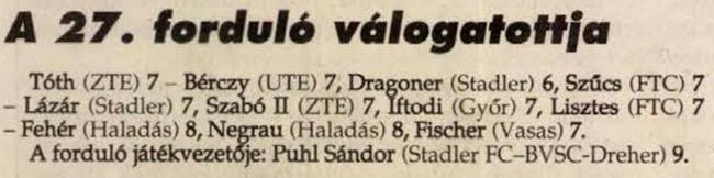 11 gólos: Orosz (BVSC-Dreher), Horváth F. (Fehérvár Parmalat ,96 FC), Illés (MTK FC)
