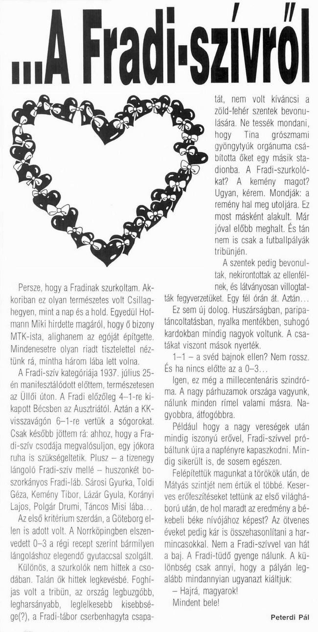 – Senki se gondolja azt, hogy az UEFA Kupa sétagalopp lesz a számunkra. Kaphatjuk a négy moszkvai csapat valamelyikét, aztán a Bayern Münchent, az olasz Laziót vagy a Parmát, hogy mást ne is említsek. Én mégis akkor lennék a legnyugodtabb, ha az a walesi csapat jutna nekünk, amelyik a BVSC-t ütötte ki. Legalább revansot vennénk ellenük.