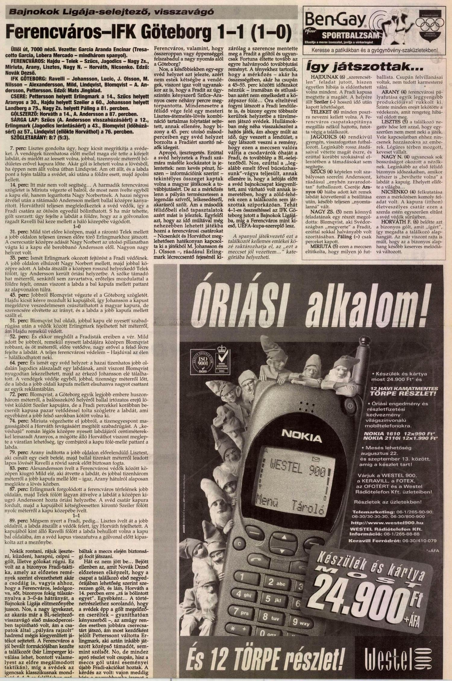1996.VIII.21. BL selejtező, Ferencváros – IFK Göteborg 1-1