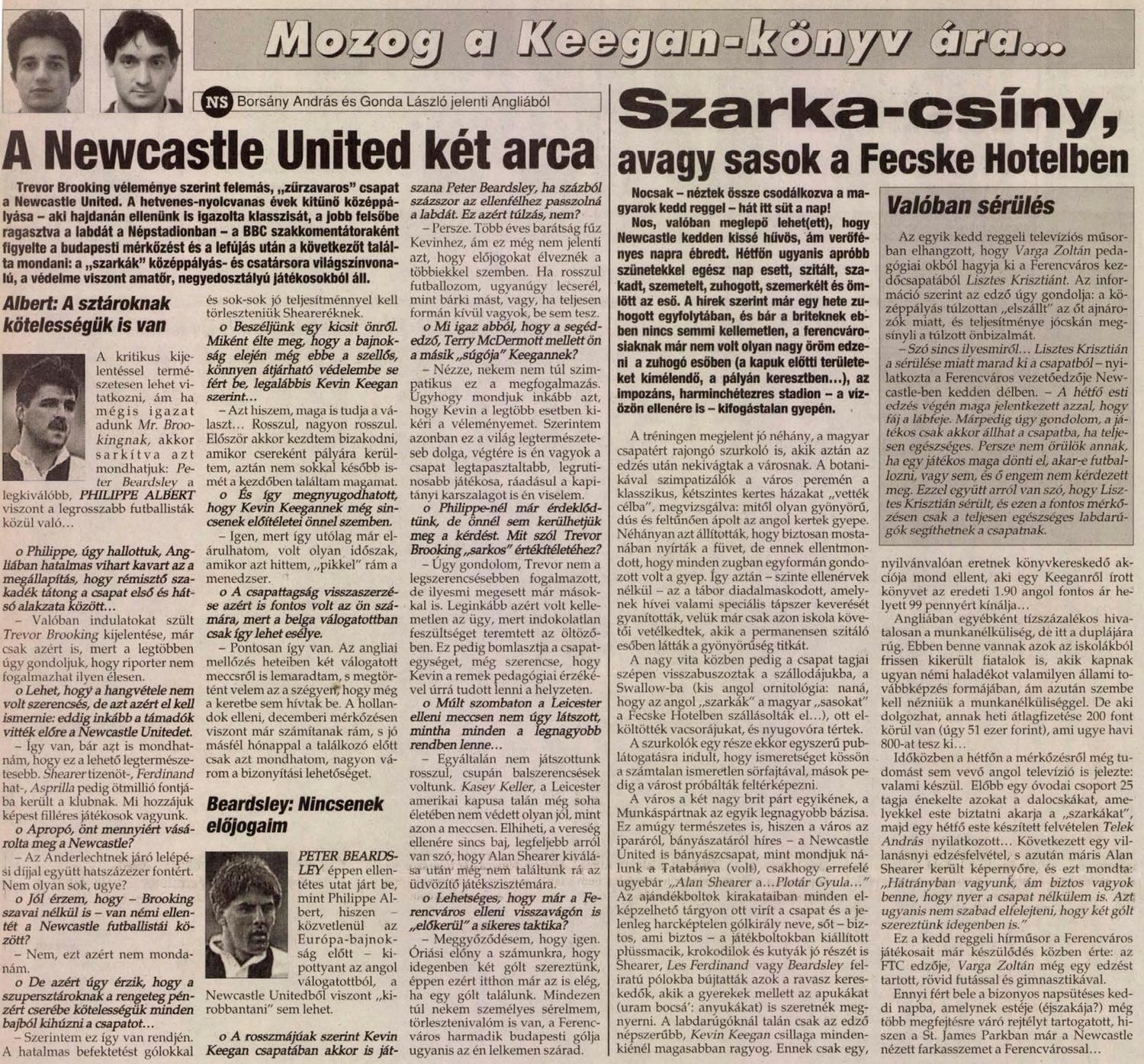 – Azért jöttünk Newcastle-be, hogy továbbjussunk. Azt nem tudom, hogy ehhez hány gólt kell rúgnunk, de annyi biztos, hogy a döntetlen már nekünk jó. Egyetlen hátrány számunkra, hogy itt egész nap zuhog az eső, ezért mély a pálya. A hétfői edzésen így csak a pálya középső részén tudunk gyakorolni, a kapu előtti területeken nem.