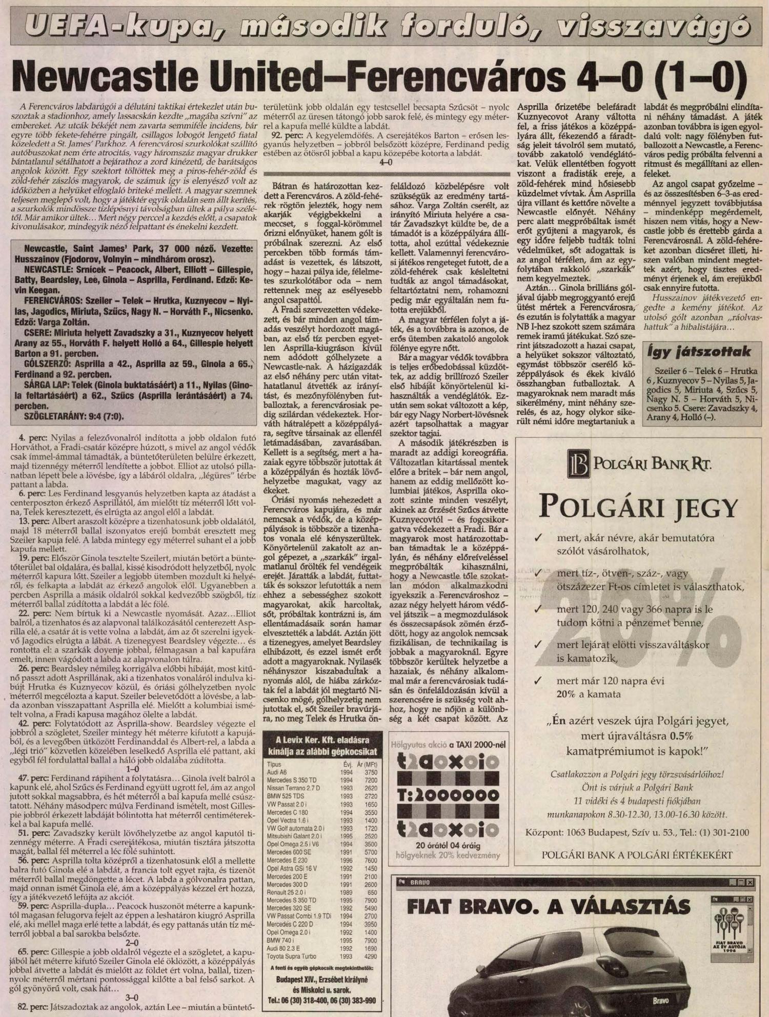1996.X.29. UEFA, Newcastle United – Ferencváros 4-0