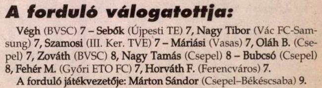 Jók: Bencze, Földvári, Király illetve Horváth F., Nyilas