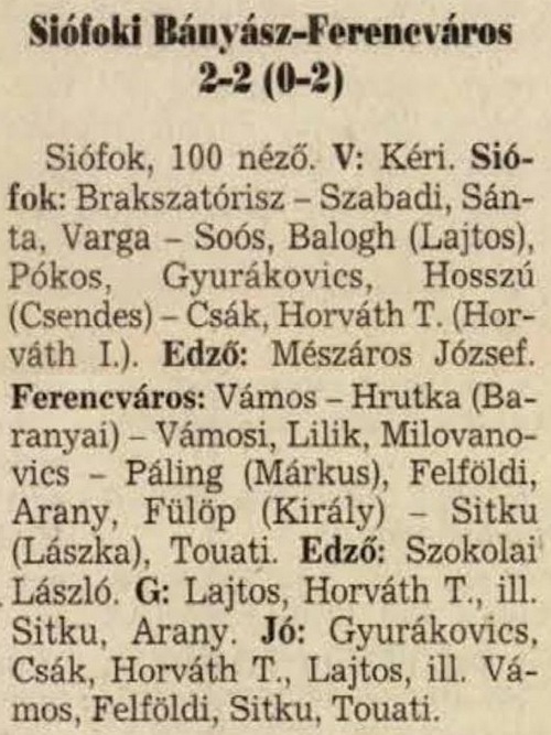 Siófoki Bányász – Ferencváros 0-1 (0-0)