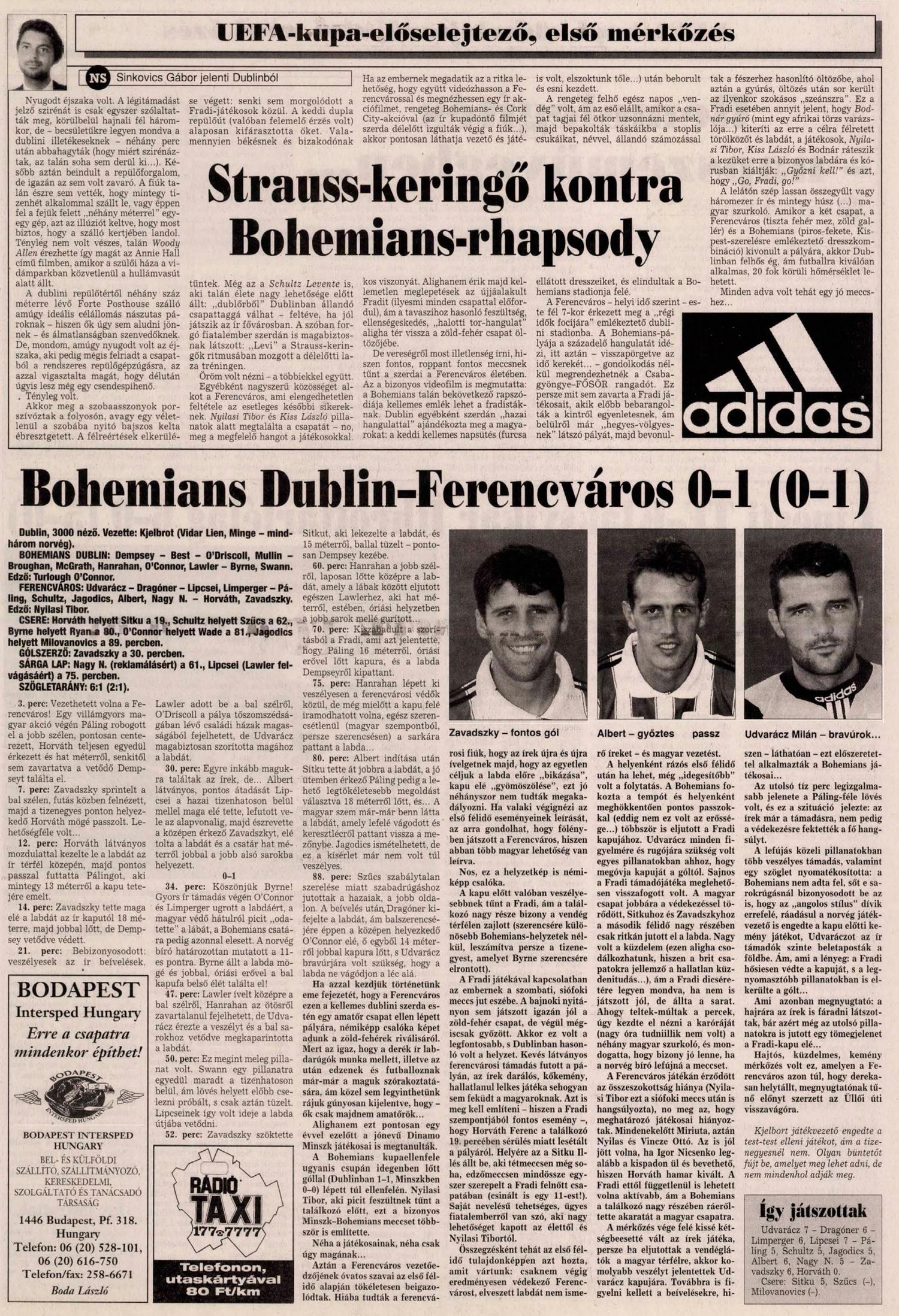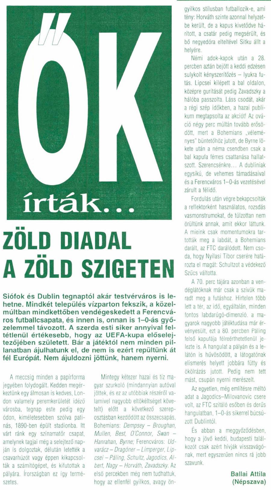 1997.VII.23. UEFA selejtező, Bohemians Dublin – Ferencváros 0-1