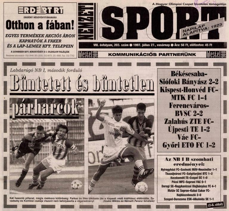 1997.VII.26. Ferencváros – BVSC-Zugló 2-2
