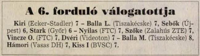6 gólos: Illés (MTK FC), Hámori (Vasas)