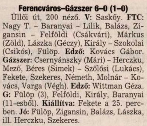 1997.XI.22. Ferencváros – Gázszer 1-1