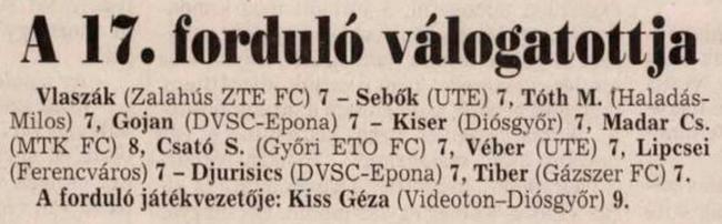 Jók: Hrutka, Horváth F., Lipcsei illetve Matus, Szalai Cs., Tiber