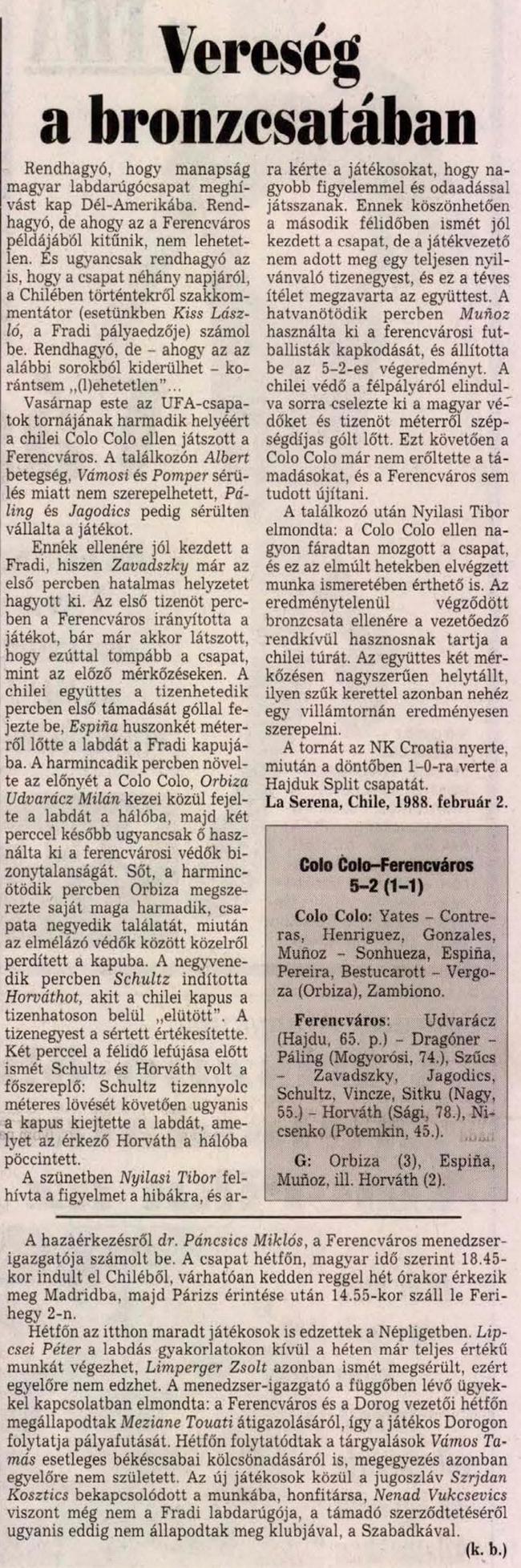 Kategória: 1997/98 | Címke: 1997/98, büntető (értékesített), Colo-Colo, Copa Ciudad de La Serena, Horváth Ferenc II., nemzetközi mérkőzés, Sági Attila