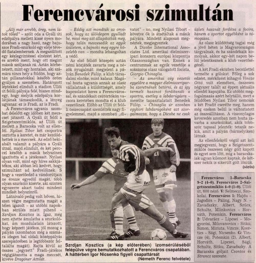 1998.II.14. Ferencváros – Baracska 9-2 (edzőmérkőzés)