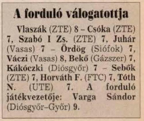 Jók: Balassa, Kovács, Baumgartner illetve Dragóner, Miriuta, Horváth F.