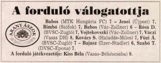 8 gólos: Kovács S. (Haladás-Milos), Herczeg (ÚTE)