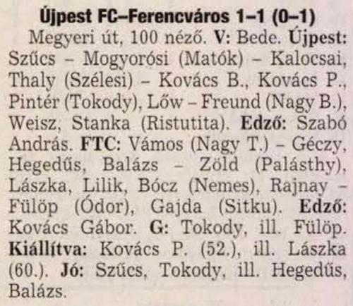 Sárga lap: Kiskapusi (41.), Pető (67.), Kovács Z. (83.) illetve Vámosi (36.), Mátyus (89.)
