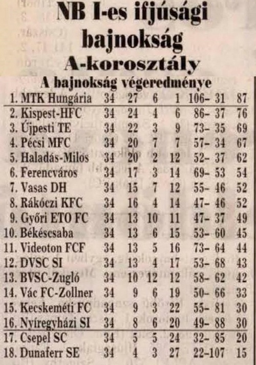 Az NB I. végeredménye: