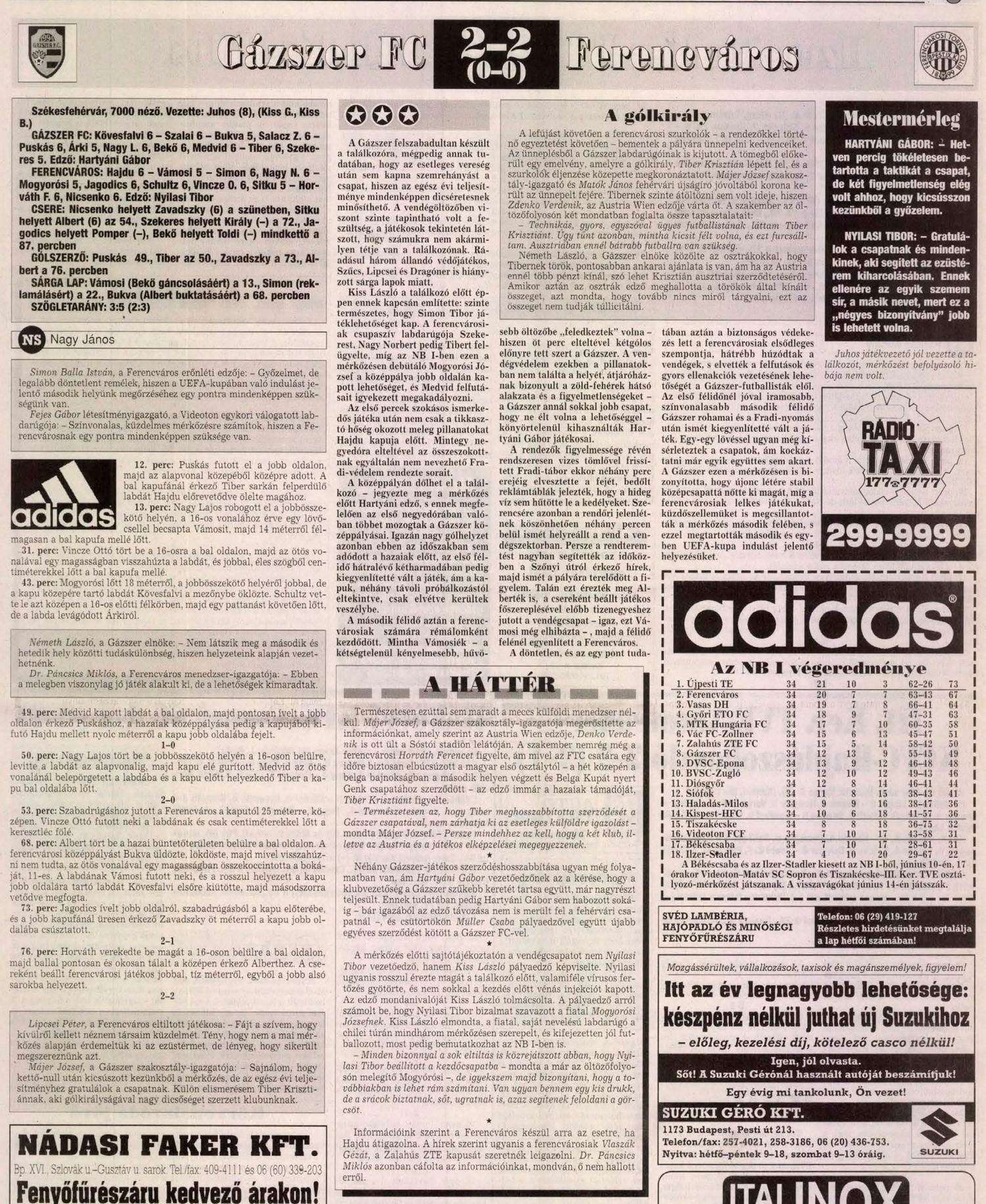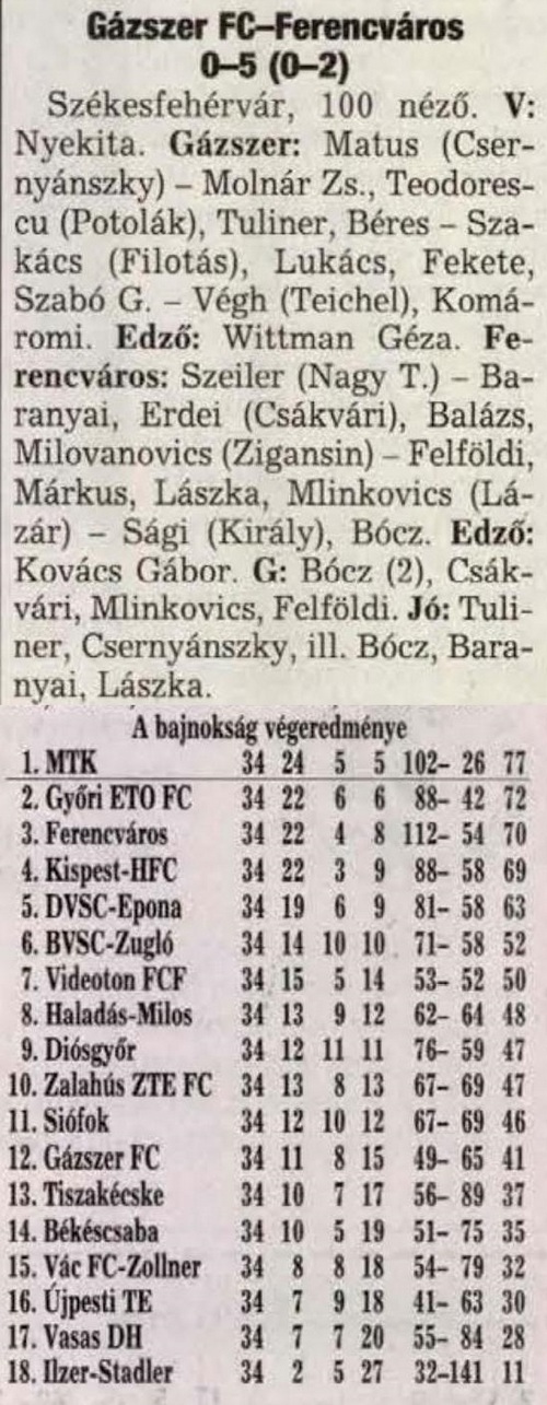 1998.VI.6. Gázszer – Ferencváros 2-2