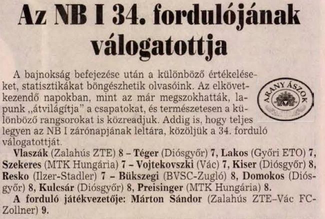 Jók: Szalay, Bekő, Nagy L., Tiber illetve Jagodics, Schultz, Zavadszky