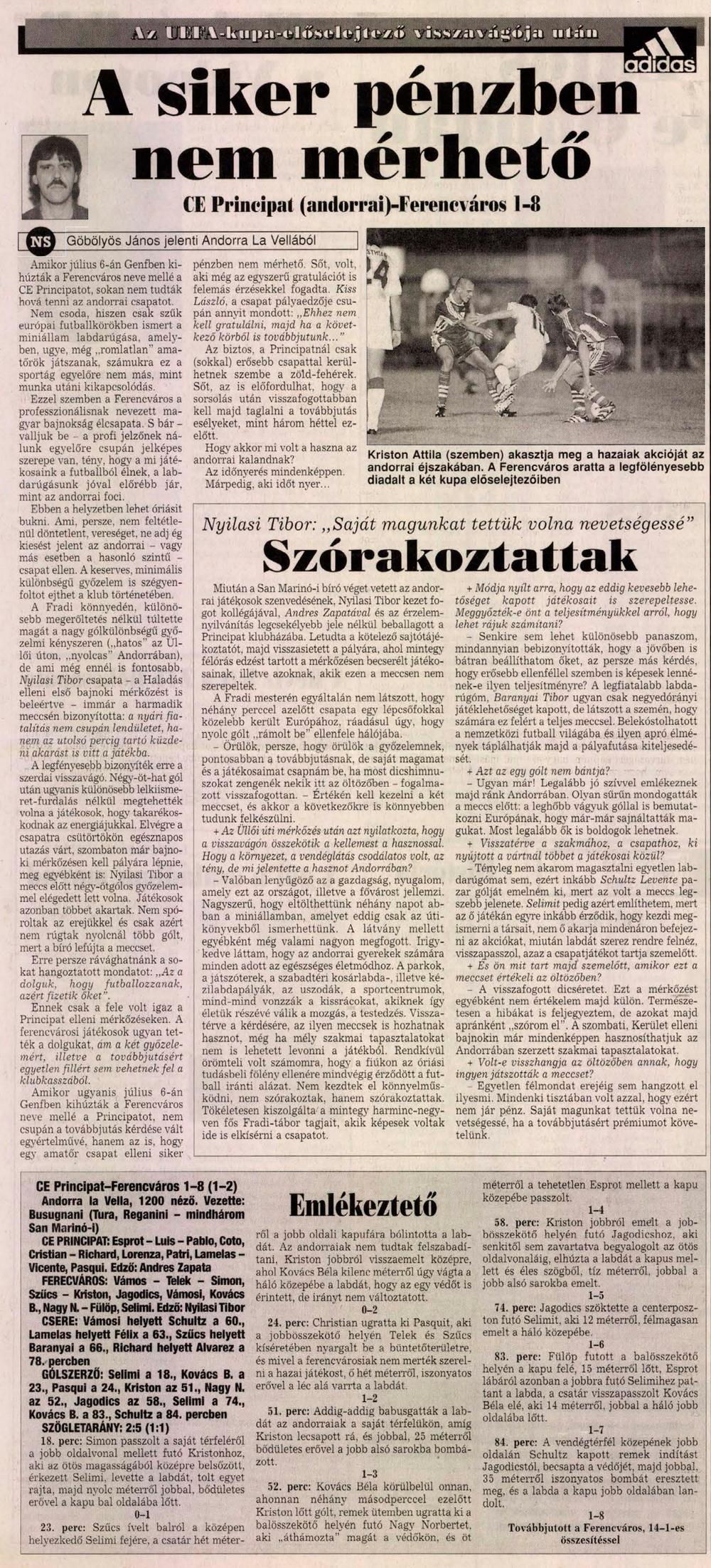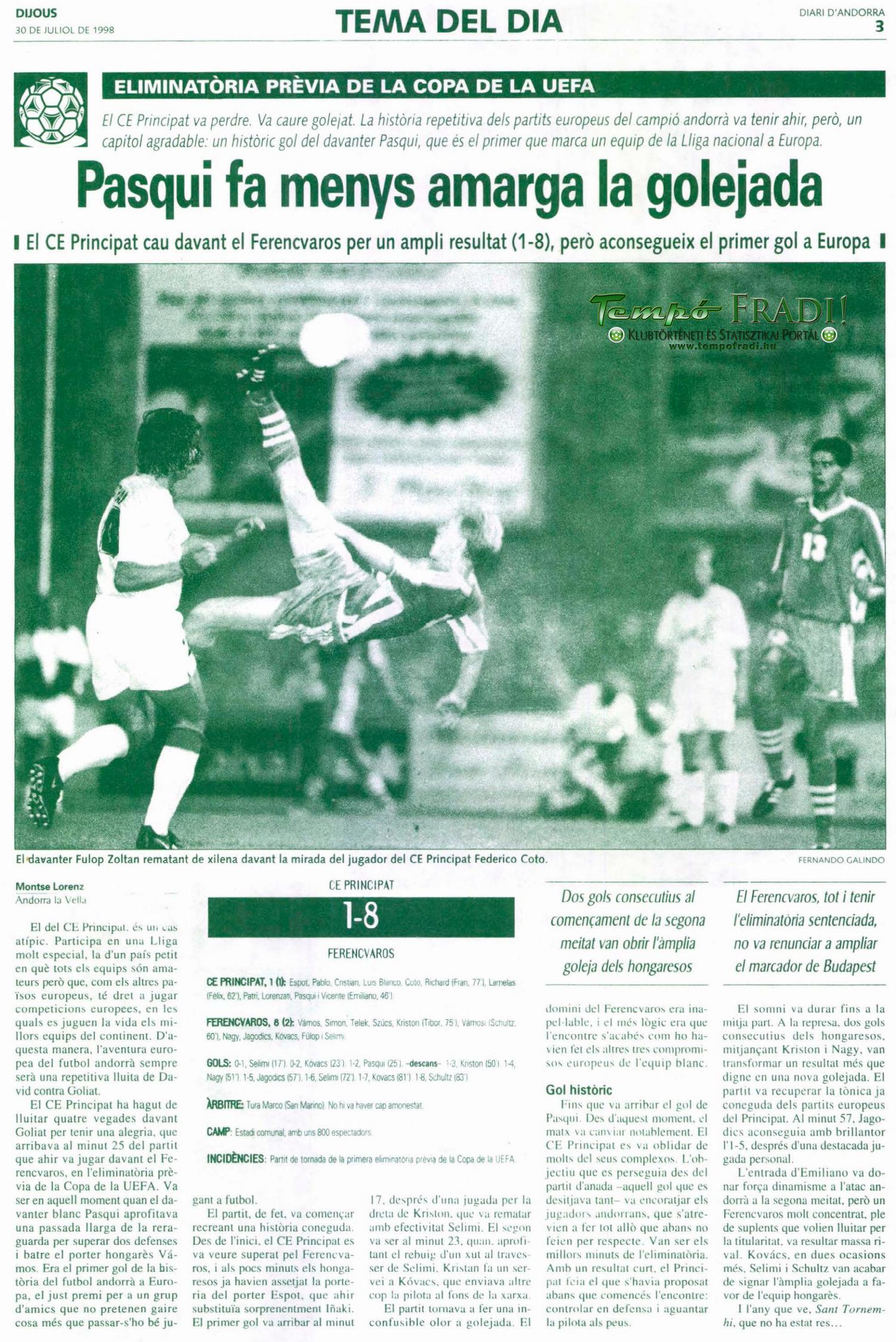 1998.VII.29. UEFA előselejtező, CE Principat – Ferencváros 1-8