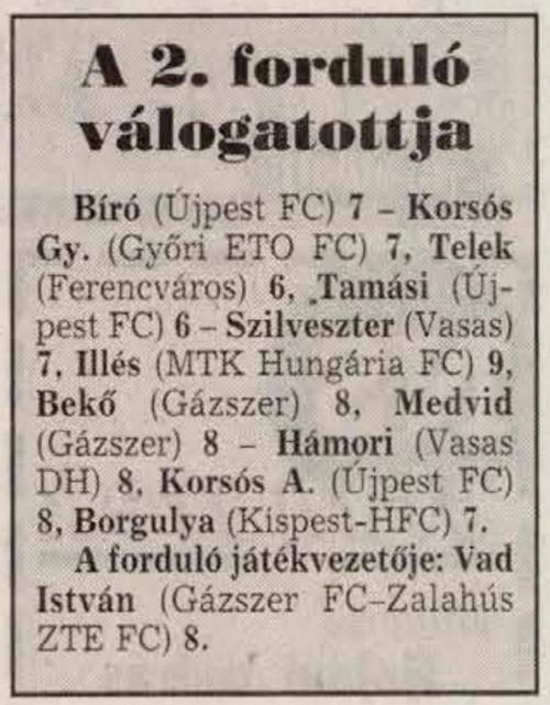 2 gólos: Kulcsár (Diósgyőri FC), Lengyel (Dunaferr), Szabó Z. (Siófoki FC), Pál (Vasas Danubius Hotels)