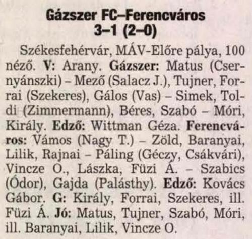 1998.VIII.15. Gázszer – Ferencváros 1-1