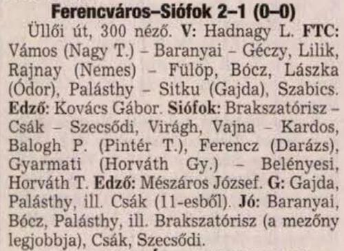1998.VIII.22. Ferencváros – Siófok 2-0