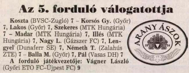 4 gólos: Lengyel (Dunaferr SE), Korsós A. (Újpest FC), Hámori (Vasas DH)
