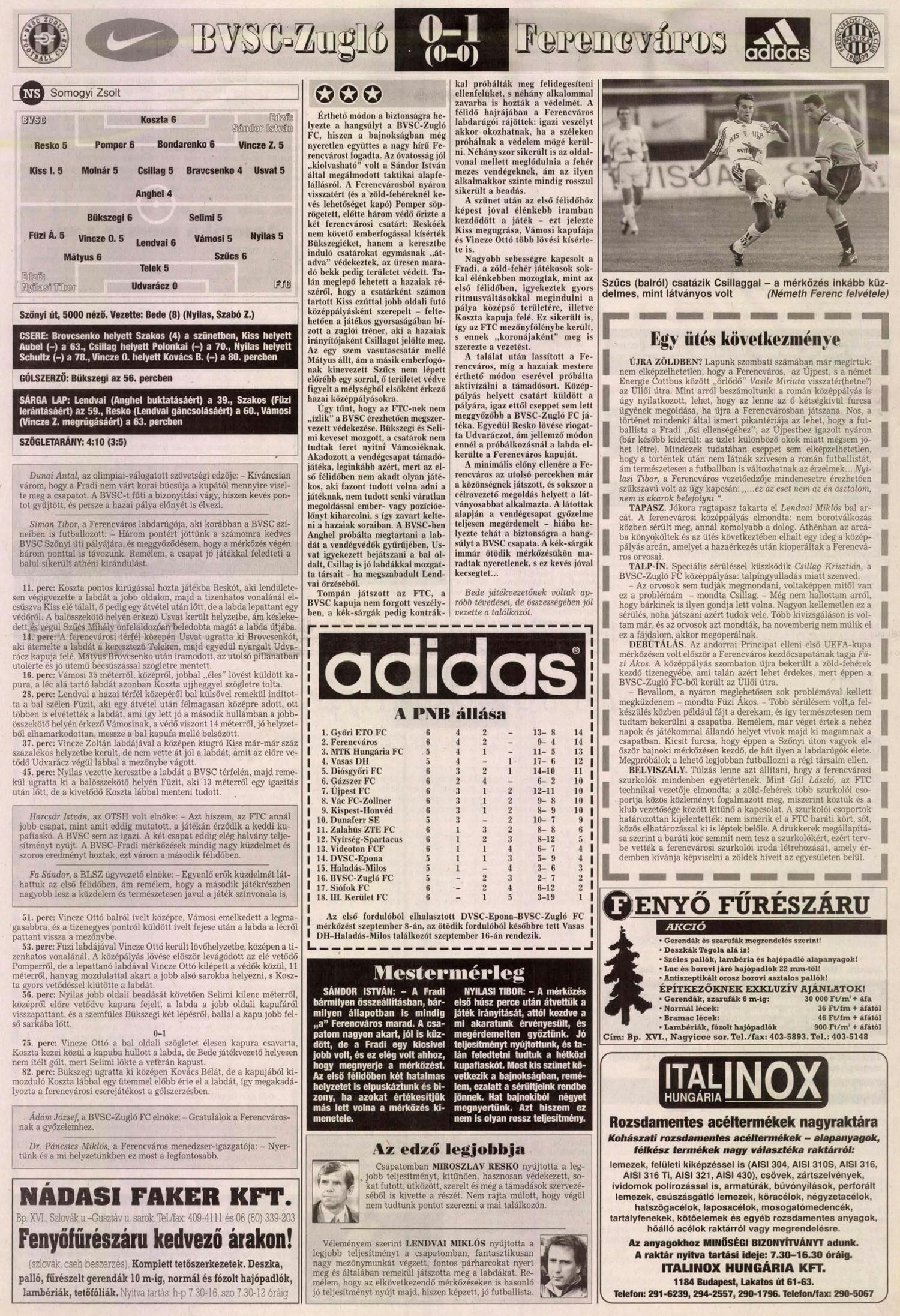 1998.VIII.29. BVSC-Zugló – Ferencváros 0-1