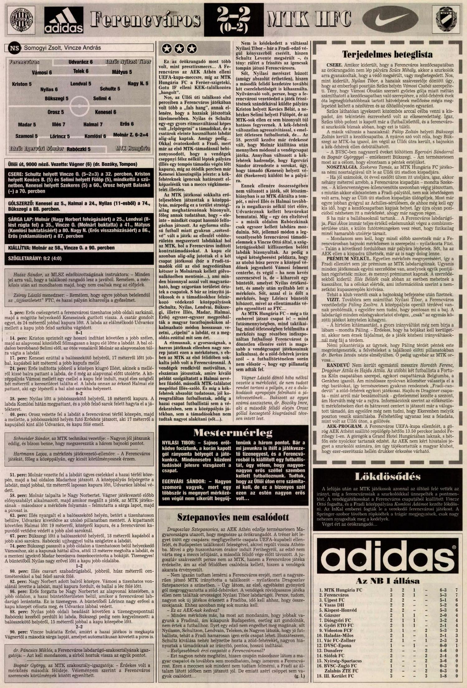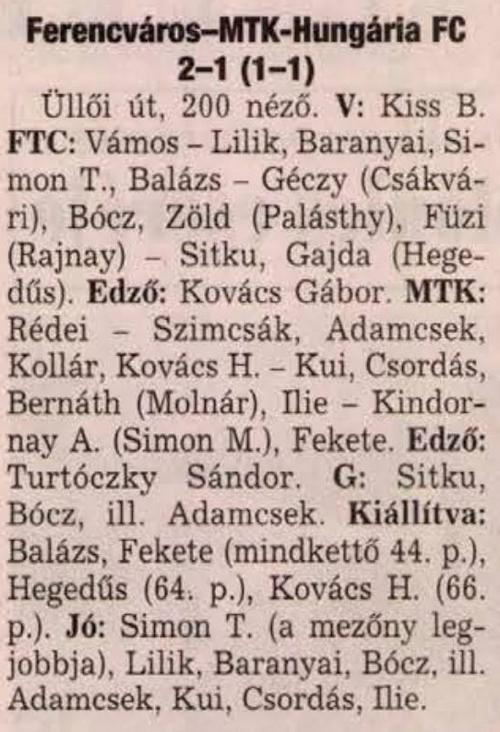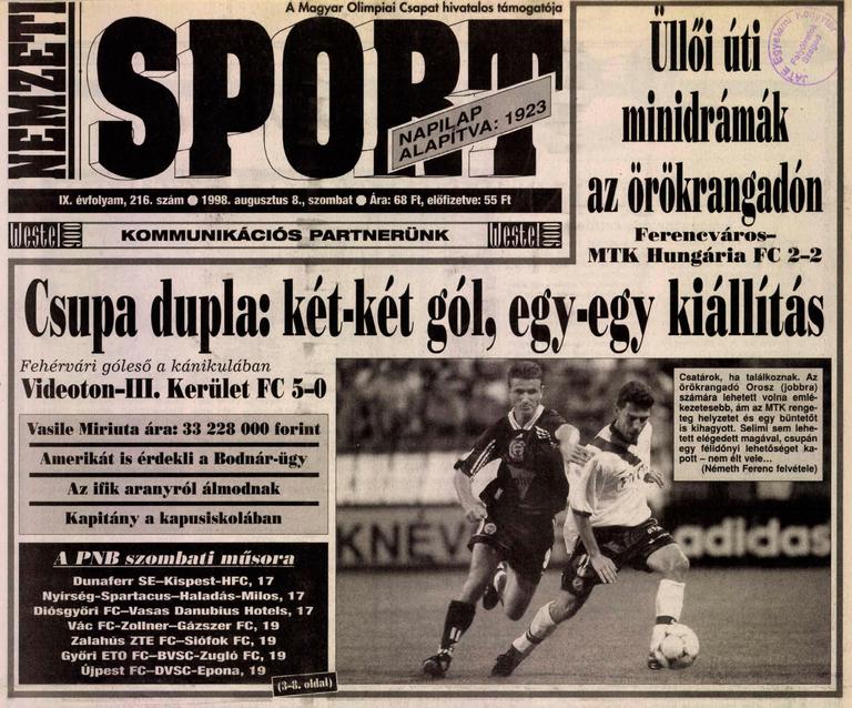 1998.VIII.7. Ferencváros – MTK-Hungária 2-2