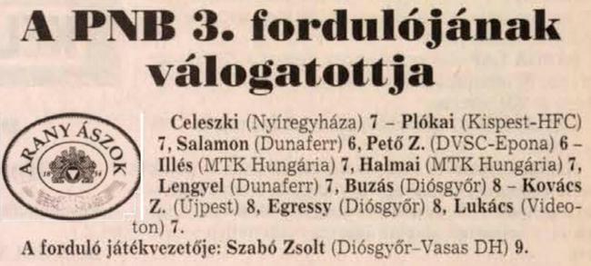 3 gólos: Egressy (Diósgyőri FC), Lengyel (Dunaferr SE), Borgulya (Kispest-Honvéd FC), Illés (MTK Hungária FC), Szabó Z. (Siófok FC), Kovács (Újpest FC), Hámori, Pál (Vasas Danubius Hotels)