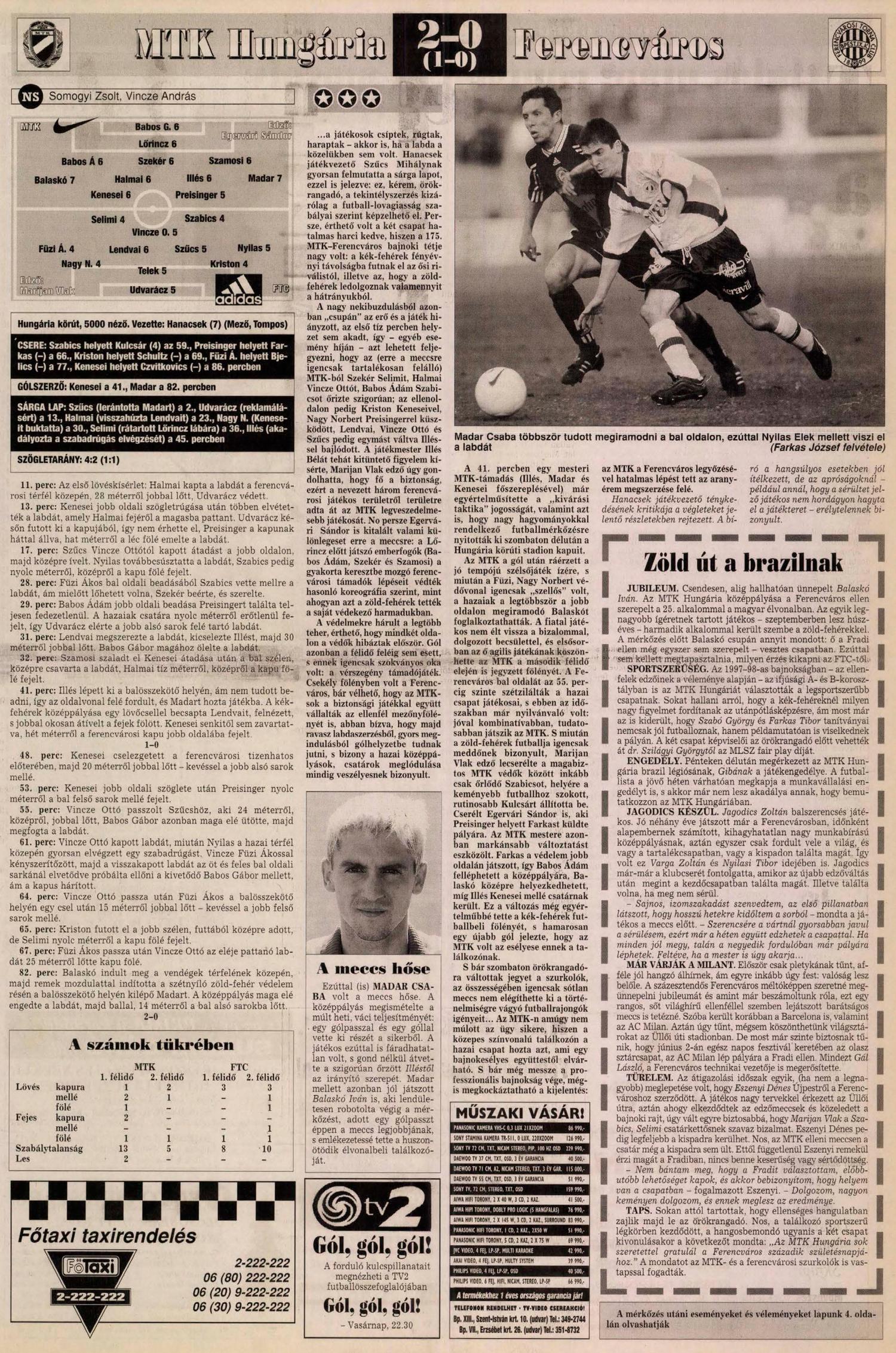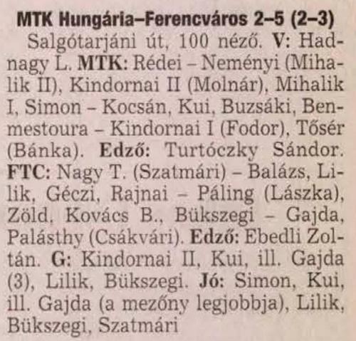 1999.III.13. MTK-Hungária – Ferencváros 2-0