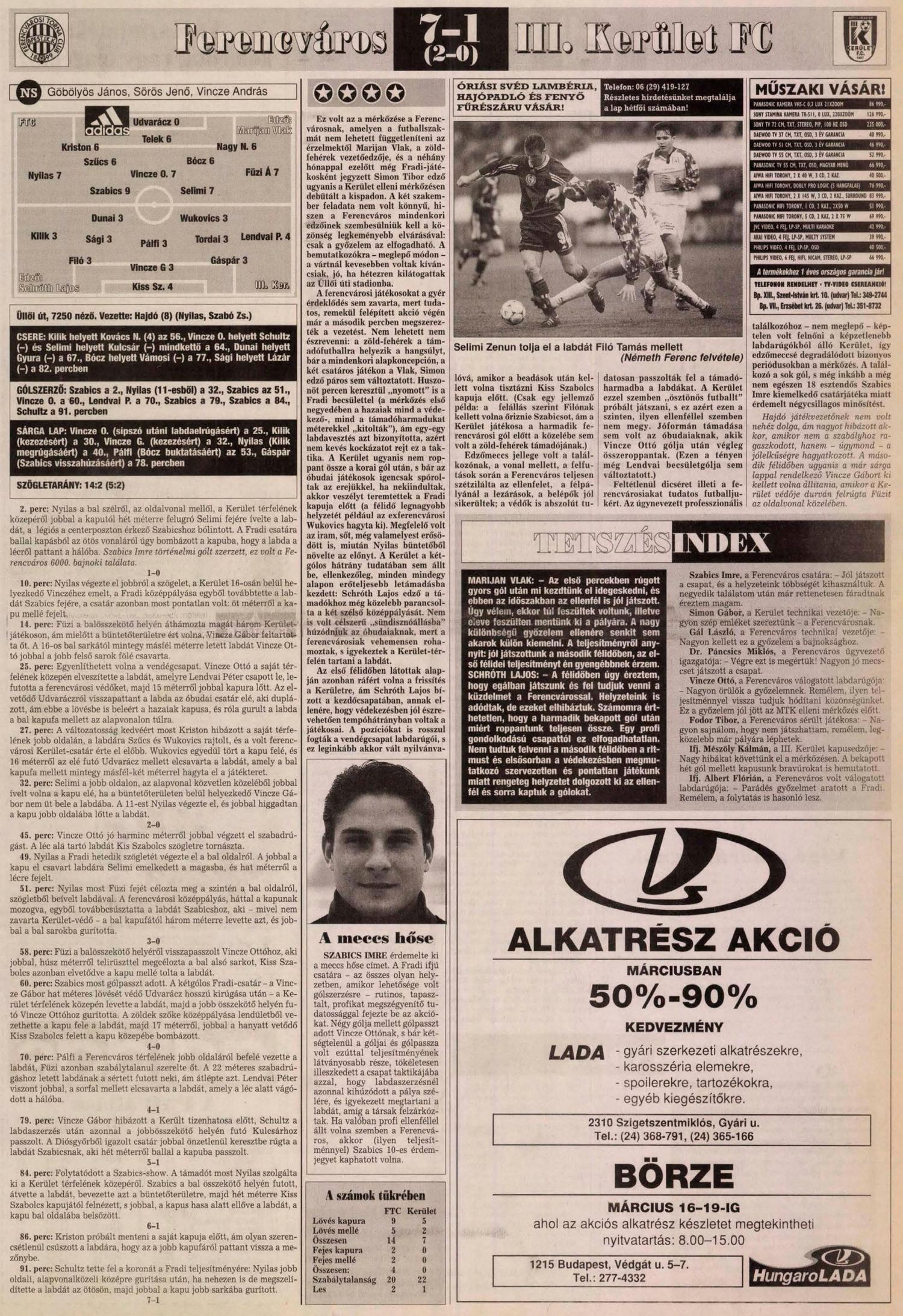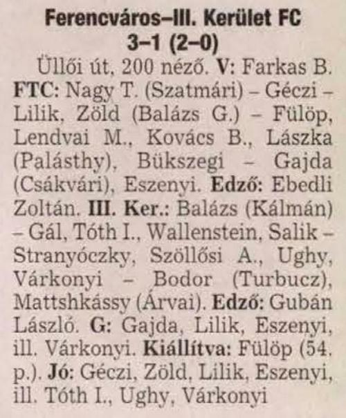 1999.III.6. Ferencváros – III. Kerület 7-1