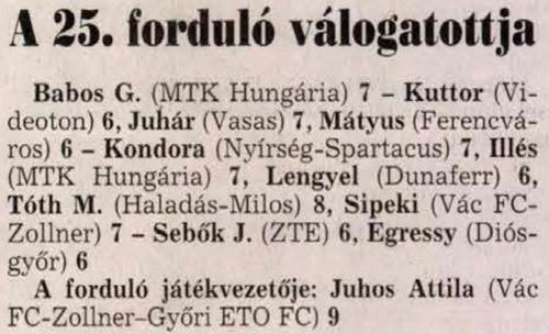 9 gólos: Kulcsár (Diósgyőr 9 gól/FTC 0), Nicsenko (Dunaferr), Kirchmayer (Nyí­rség), Pál, Hámori (Vasas DH), Ilea (DVSC)