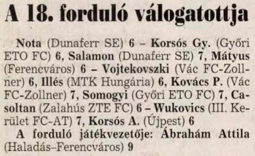 10 gólos: Zavadszky (Dunaferr), Korsós A. (Újpest), Korsós Gy. (Győr)