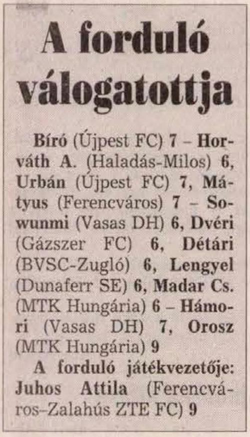 11 gólos: Ilea (DVSC-Epona), Korsós A. (Újpest), Szabics (Ferencváros), Waltner (Videoton)
