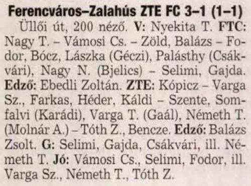 1999.V.1. Ferencváros – Zalahús ZTE 4-0