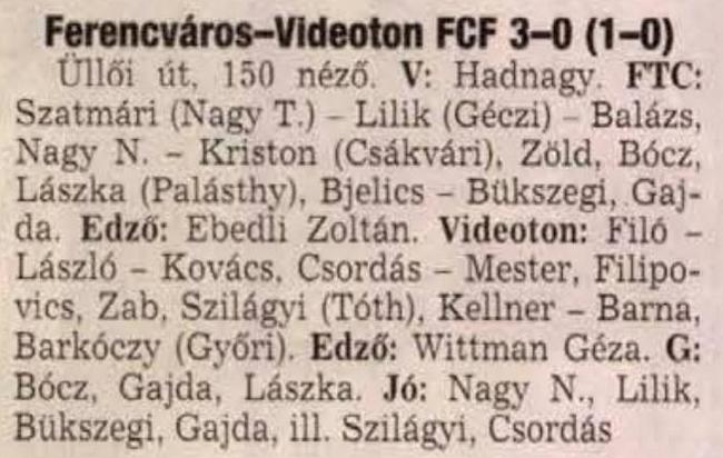 1999.V.16. Ferencváros – Videoton 2-0