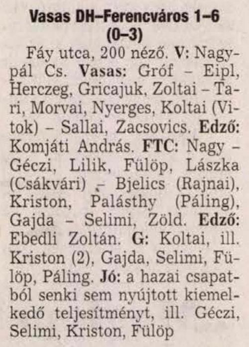 1999.VI.12. Vasas Danubius Hotels – Ferencváros 2-1