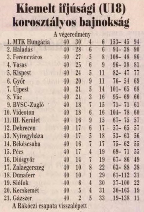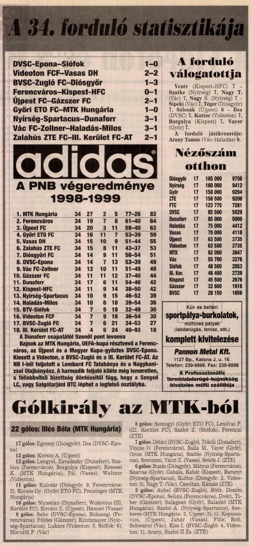 17 gólos: Ilea (DVSC), Egressy (Diósgyőri FC)