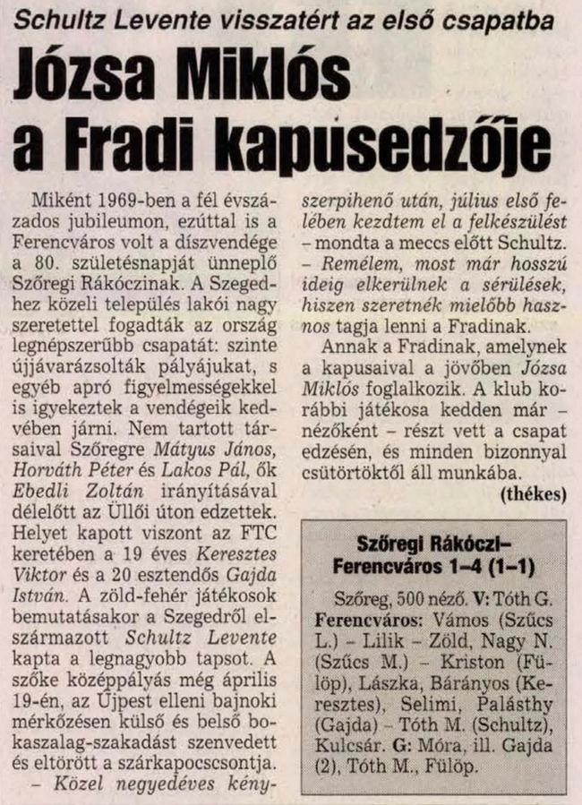 Kategória: 1999/00 | Címke: 1999/00, Fülöp Zoltán, Gajda István, hazai díjmérkőzés, jubileumi mérkőzés, Szőregi Rákóczi, Tóth Mihály