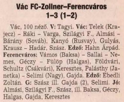 1999.VIII.29. Vác FC-Zollner – Ferencváros 0-2